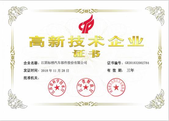 高新技術(shù)企業(yè)認定的順利通過,是對我公司自主研發(fā)能力和技術(shù)創(chuàng)新能力的充分肯定。以科技為基礎(chǔ),以創(chuàng)新為矯翼,推動企業(yè)技術(shù)產(chǎn)業(yè)化,將是標榜汽車未來的發(fā)展之路。在國家高企政策的扶持下,標榜汽車必將迎來更加輝煌的明天。